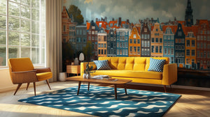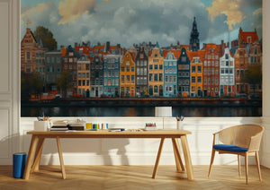 This Amsterdam wallpaper mural is a customized wallcovering showing one of most iconic images: the canal houses and their facades mirrored in the still water, gabled roofs colored in various hues of red, orange, and yellow. It captures the character and atmosphere of the ancient Dutch city, whose architectural beauty was captured using warm tones of color. So, with the hue of murals, the time has come to infuse your interior space with a pinch of European touch, a hint of travel and culture.