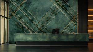Lush deep emerald green, this mural wallpaper crosses with thin lines of gold that will meet on a dynamic geometric pattern. Rich and deep-set, this green set a sophisticated, moody atmosphere. At the same time, metallic gold gives the room a sense of well-elegance and high class. That's perfect for adding some oomph to the statement wall, introducing some Art Deco-inspired classiness into the modern interior, which is in high demand for a living room, bedroom, or office that aspires to the perfect blend of sophistication with modernity.