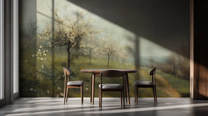 This mural wallpaper represents an interesting springtime view: trees with delicate white blossoms, misty with soft light, and a serpentine path through the lush green meadow. The scenery is so peaceful and pastoral that it will go hand in glove with serenity inside your room. Suitable for bedrooms, lounges, or even study rooms, this mural invites the soft charm of nature indoors.