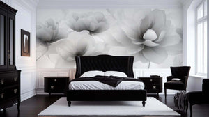 This wallpaper mural has a plain and elegant design in soft gray colors, presenting extensive and detailed flowers with thin lines. The one-color scheme makes it classy and flexible, suitable for modern and classic interior styles. This gentle shading and thin-line feeling give a sense of depth and texture without cluttering the space visually. Great for bedrooms, living rooms, or offices, this mural adds a nice, calm feel to any place.