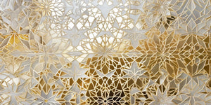 This wallpaper mural has quite an intricate, complex design in shades of white and gold, taking inspiration from traditional lattice patterns. Delicate cut-out shapes come together in a mosaic of star-like and floral motifs, making this mural so much like an epitome of luxury and ornamentation. A golden base shines through the latticework of white to give the impression of a very tasteful display of light and shade that gives the design even more dimension. This mural is perfect for creating a sophisticated atmosphere in living rooms, dining rooms, or formal interiors. It combines the old-world charm with a touch of contemporariness.