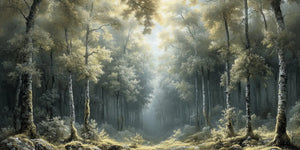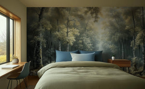 This mural wallpaper shows an incredible forest scenery with mist, calmness, and nature's beauty. High trees with blotchy trunks, texture with moss patches, stretch up to the treetops, casting soft green shades as the sun passes through the leaves. The ground is teeming with life, small plants grow rather well, and upholstering rocks in moss gives an enchanting atmosphere to the forest. It's perfect for any living room, bedroom, or office space. This mural forms the perfect balance in creating a natural and serene atmosphere, transferring one into some secreted woods.