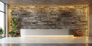 This wallpaper mural features a realistic stone brick pattern, giving it the look of a natural stacked stone wall. In this design, the appearance is textured, including shades of gray, white, and even hints of beige to emulate the rough appearance of real stone, complete with light variations in color and depth. The layered, roughly cut stones give it that 3D look—adding an organic, earthy look to any place. With their ideal size for accent walls in living rooms, kitchens, or offices, these murals bring a little bit of the outdoors inside to add natural, timeless style to any interior.