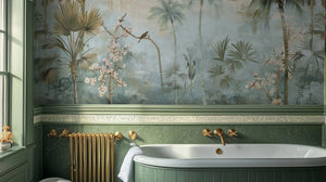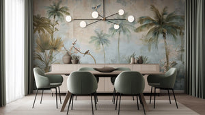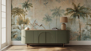 Lush palm trees, flowing cherry blossoms, and birds against soft, pastel-colored backgrounds invite an oasis through this watercolor mural wallpaper into every room. A liberally appointed watercolor effect inspires this design with a vintage look, adding subtle texture to create an atmosphere of elegance and soothe at once. Suitable for living rooms, bedrooms, or dining rooms, this mural brings in just that refreshing tropical feel without overwhelming the space. Ideal for anyone loving nature-inspired decoration while giving it that twist of exoticness, this mural provides the perfect touch to coastal, tropical, and bohemian interiors.